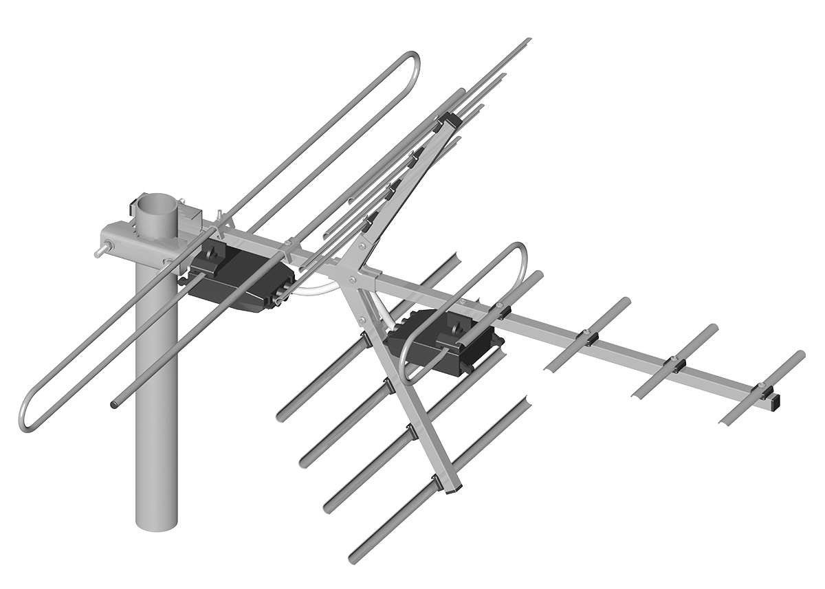 - w paśmie VHF (kanały 5 - 12) w polaryzacji poziomej lub pionowej